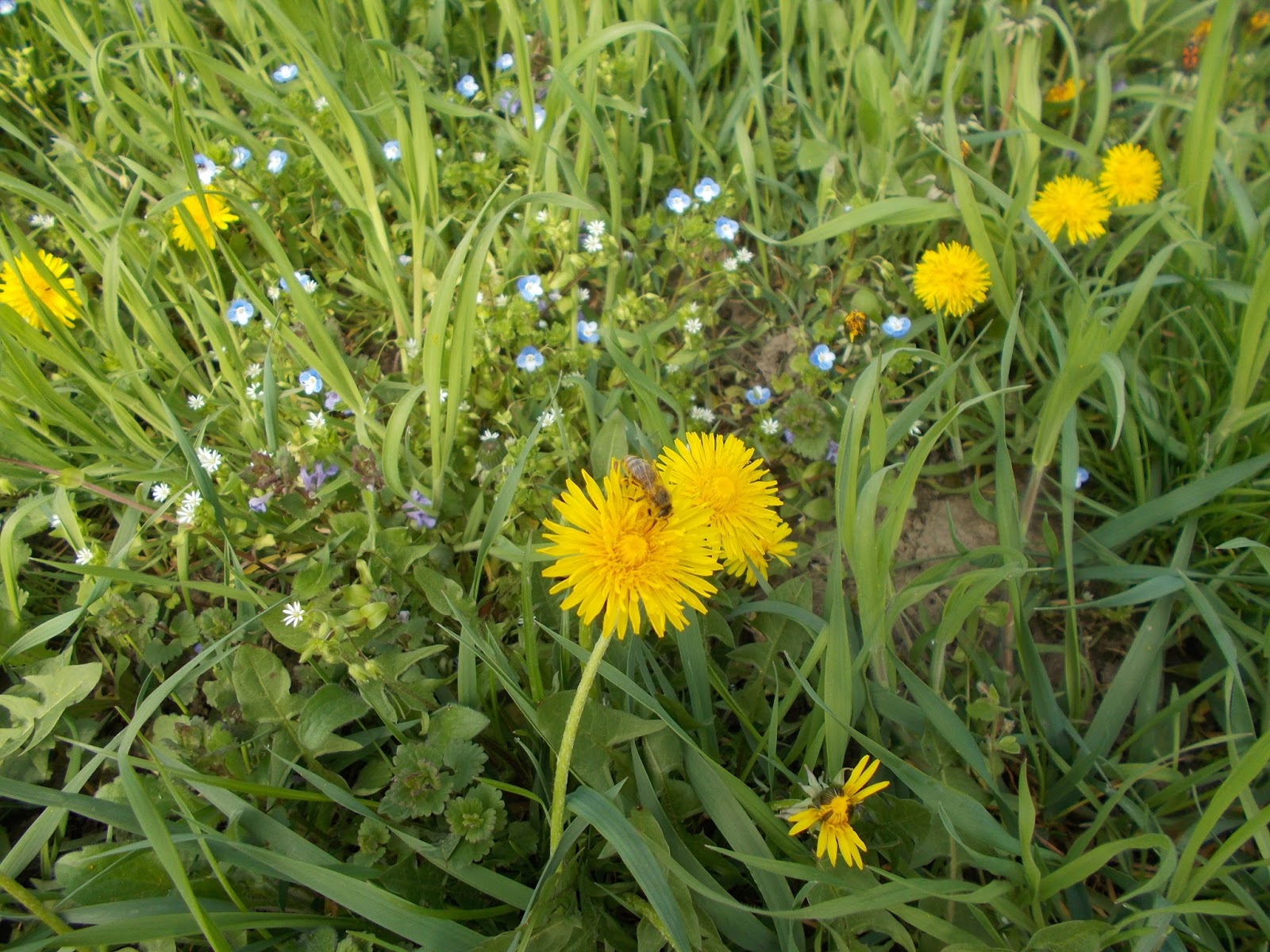 Olyan nagy munkában voltak, hogy szinte lefordultak a pitypangról a virágpor súlya alatt.